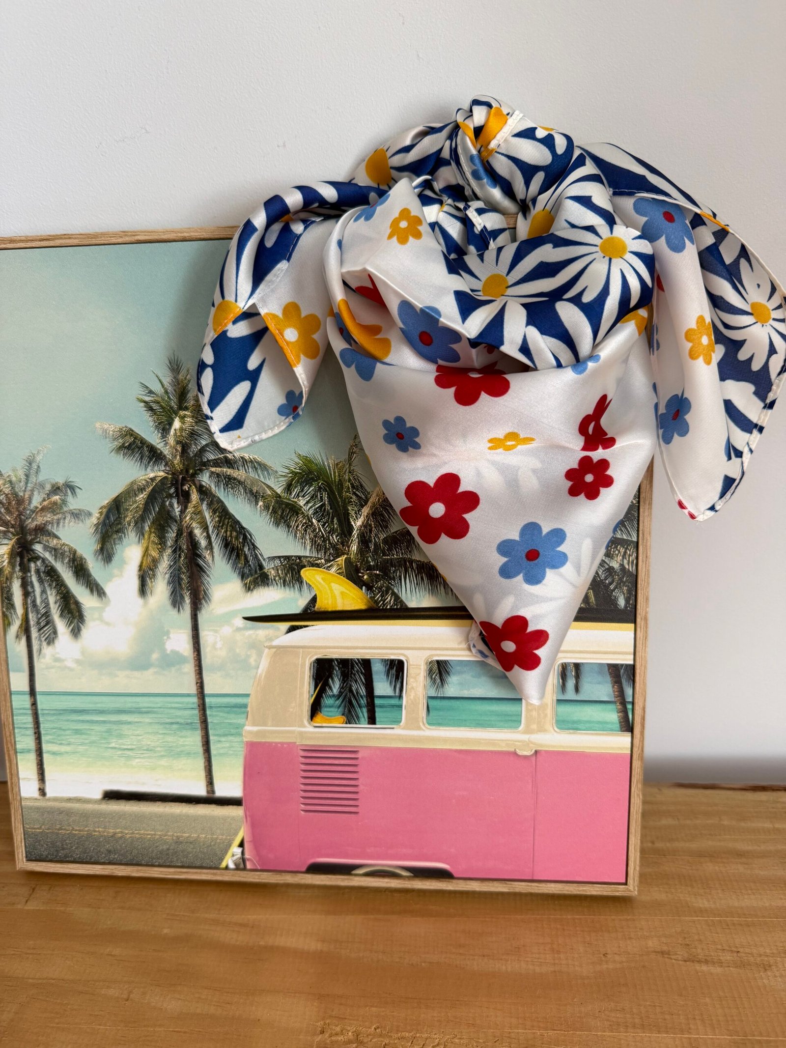 ✨Apporte une touche de fraîcheur à tes looks avec ce joli bandeau aux nuances dominantes de bleus, relevées de touches de rouge et de jaune. Léger et facile à porter, il se noue aussi bien en bandana dans les cheveux qu’en foulard pour accessoiriser une coiffure ou un sac. L’accessoire parfait pour illuminer tes tenues de printemps et d’été avec une note colorée et tendance.