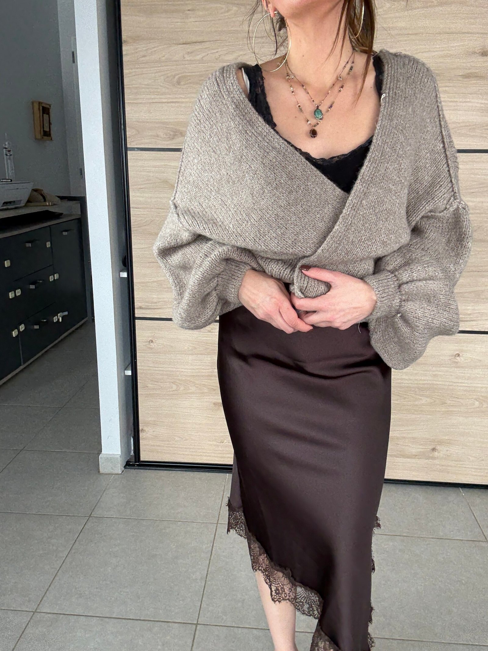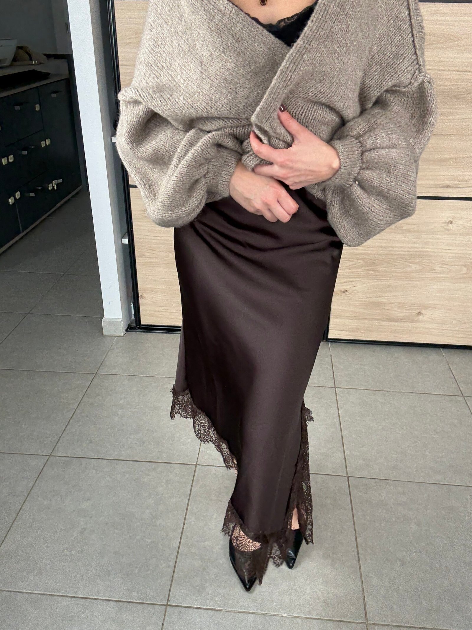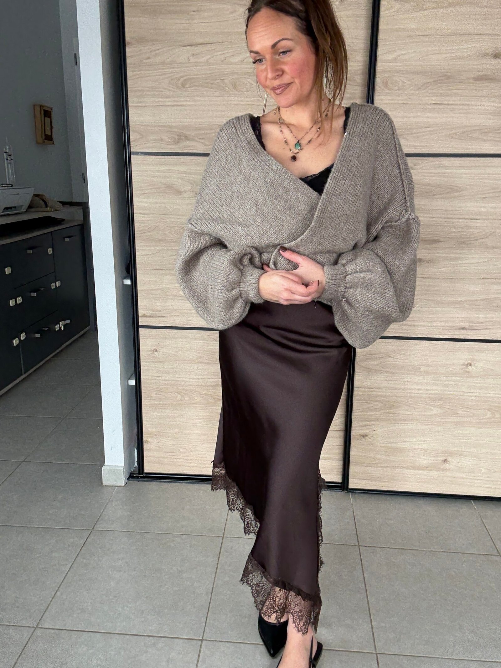 Disponible en chocolat🤎, une teinte chaleureuse et intemporelle, et en bordeaux,♥️ profonde et élégante, la jupe Cristina se porte aussi bien avec un pull doux qu’avec un top plus habillé.