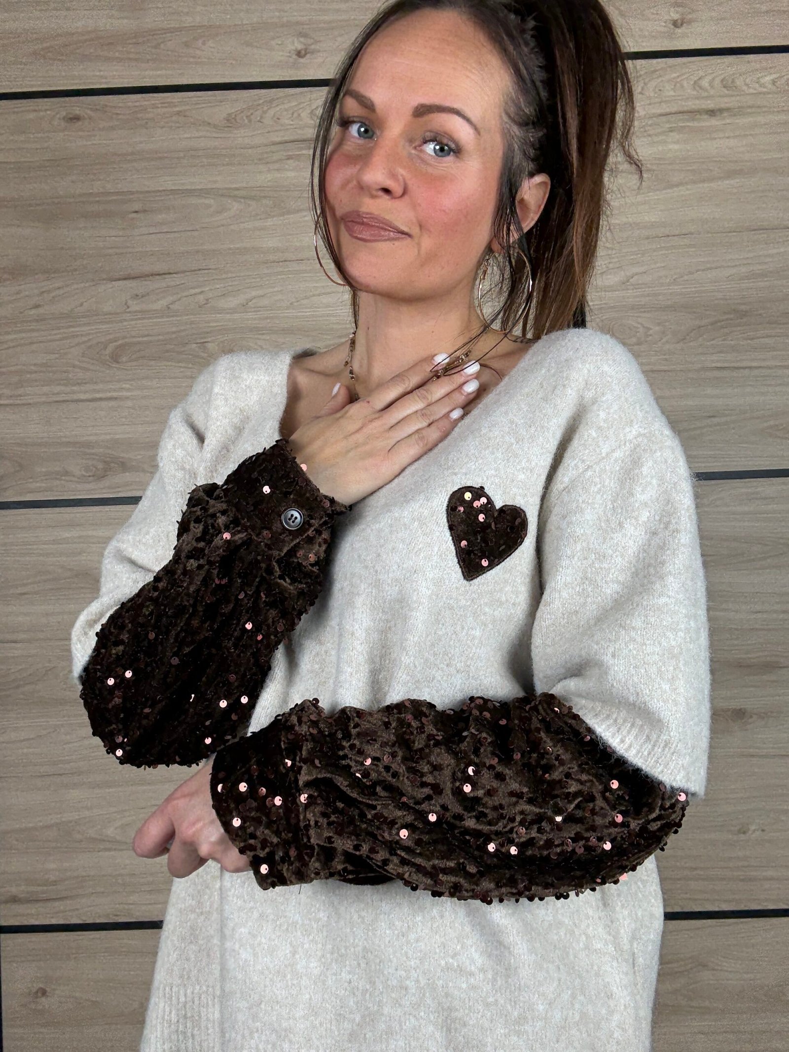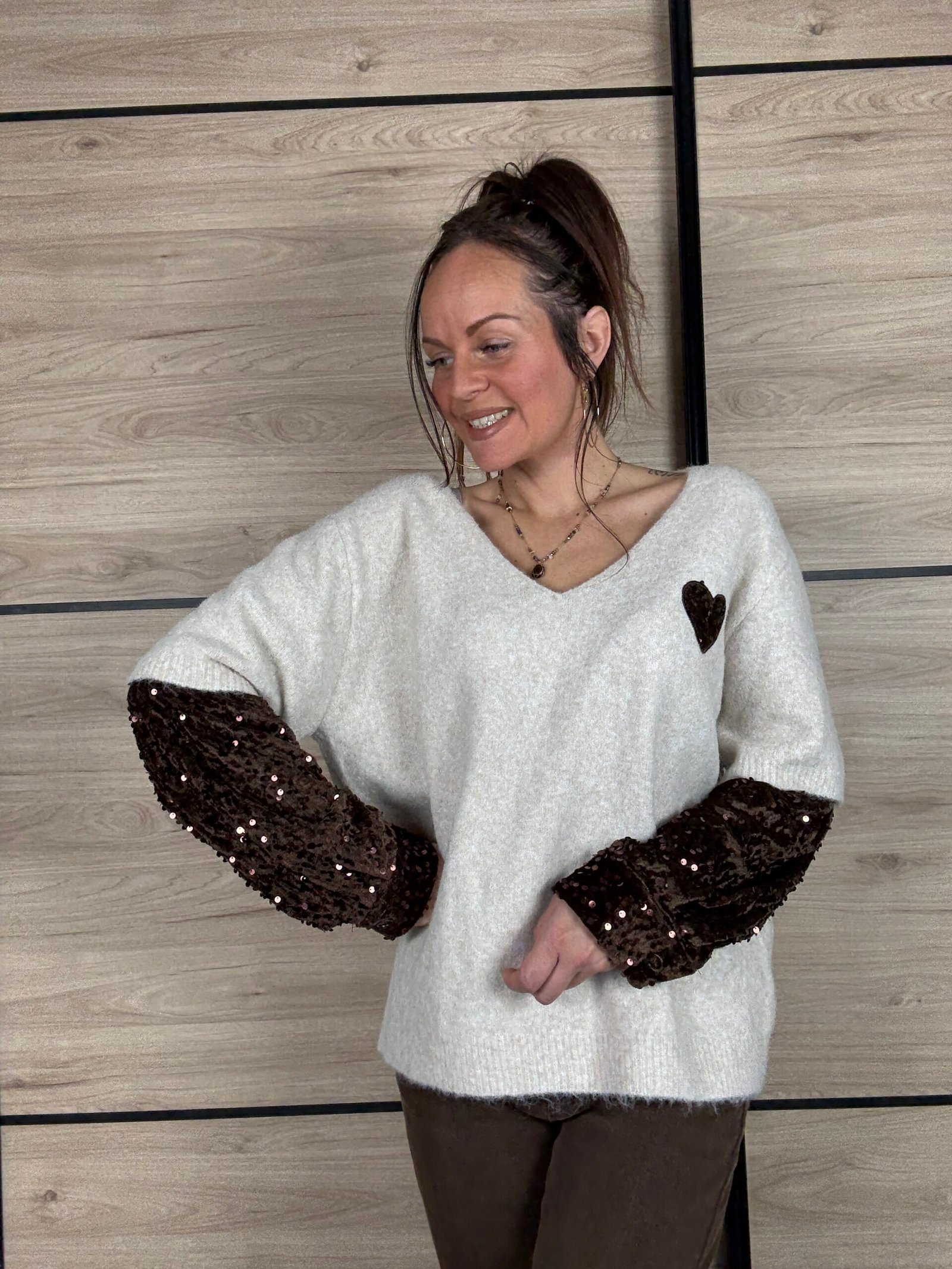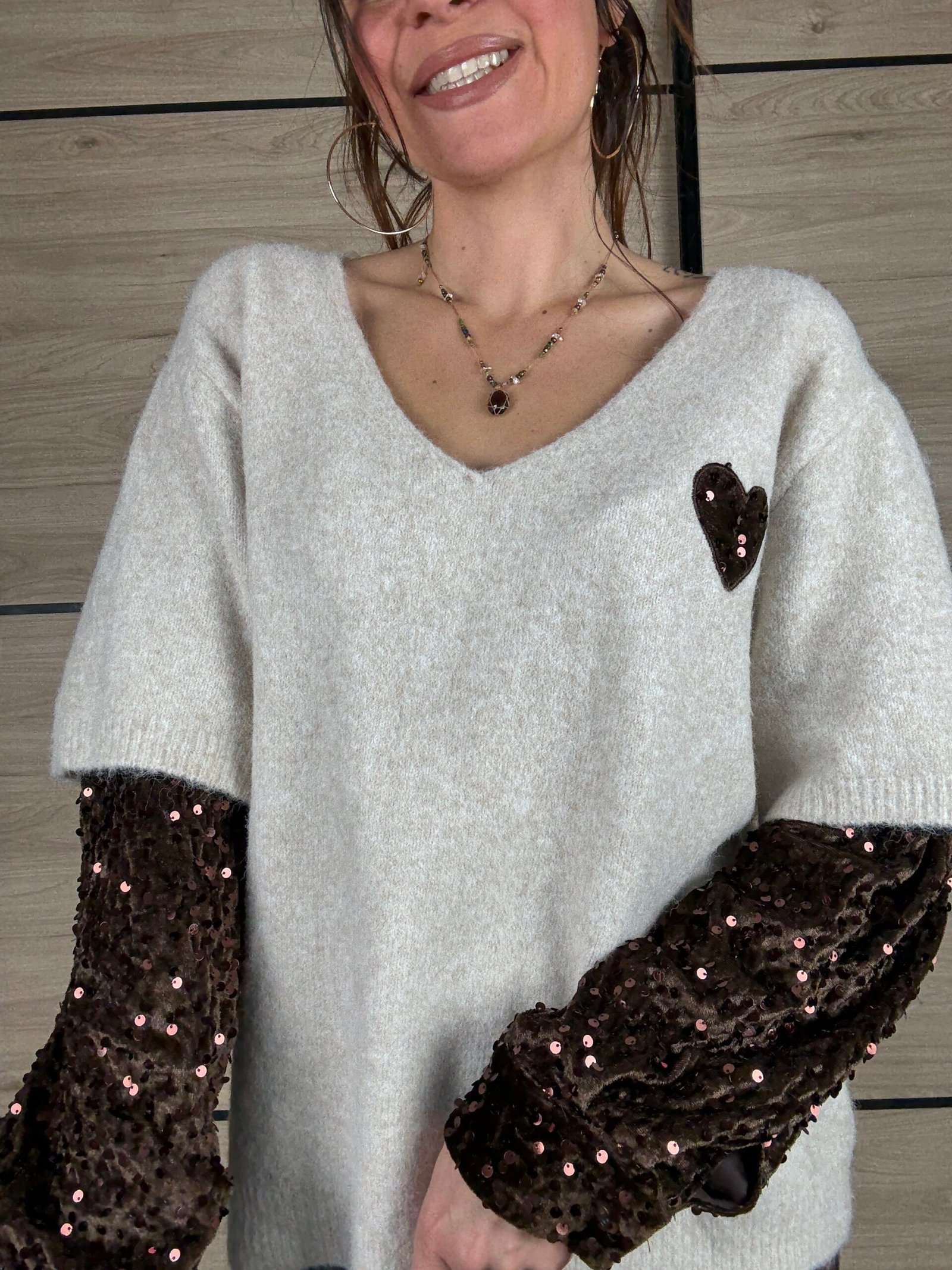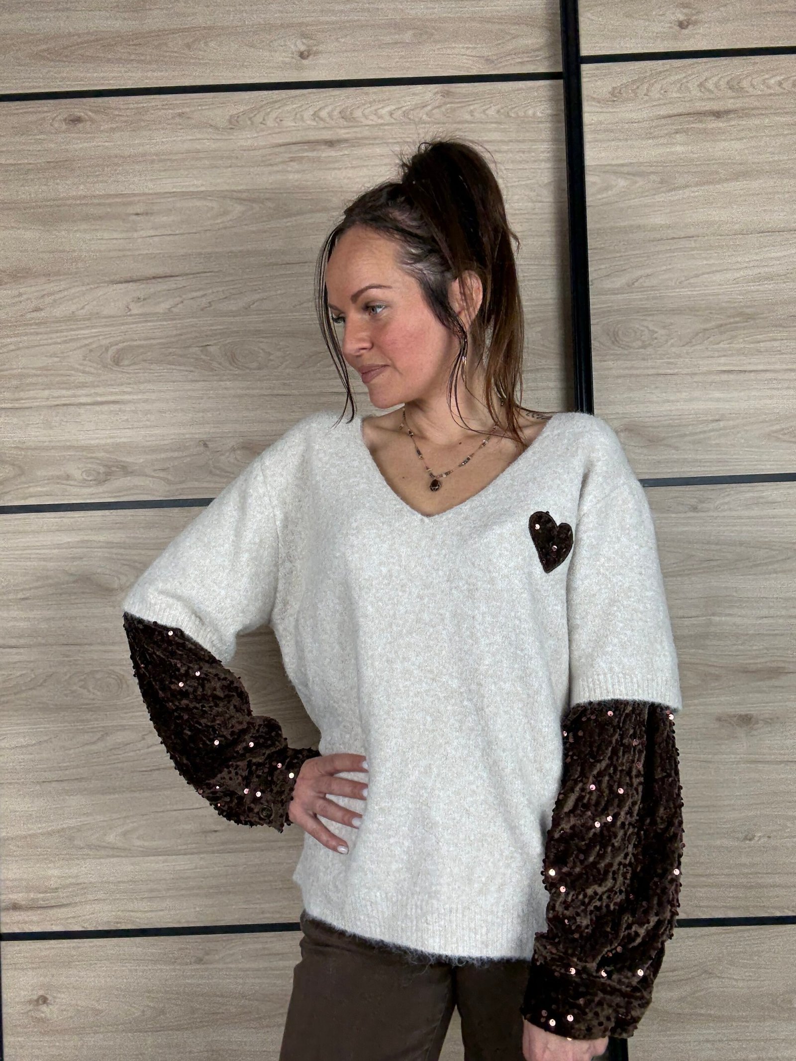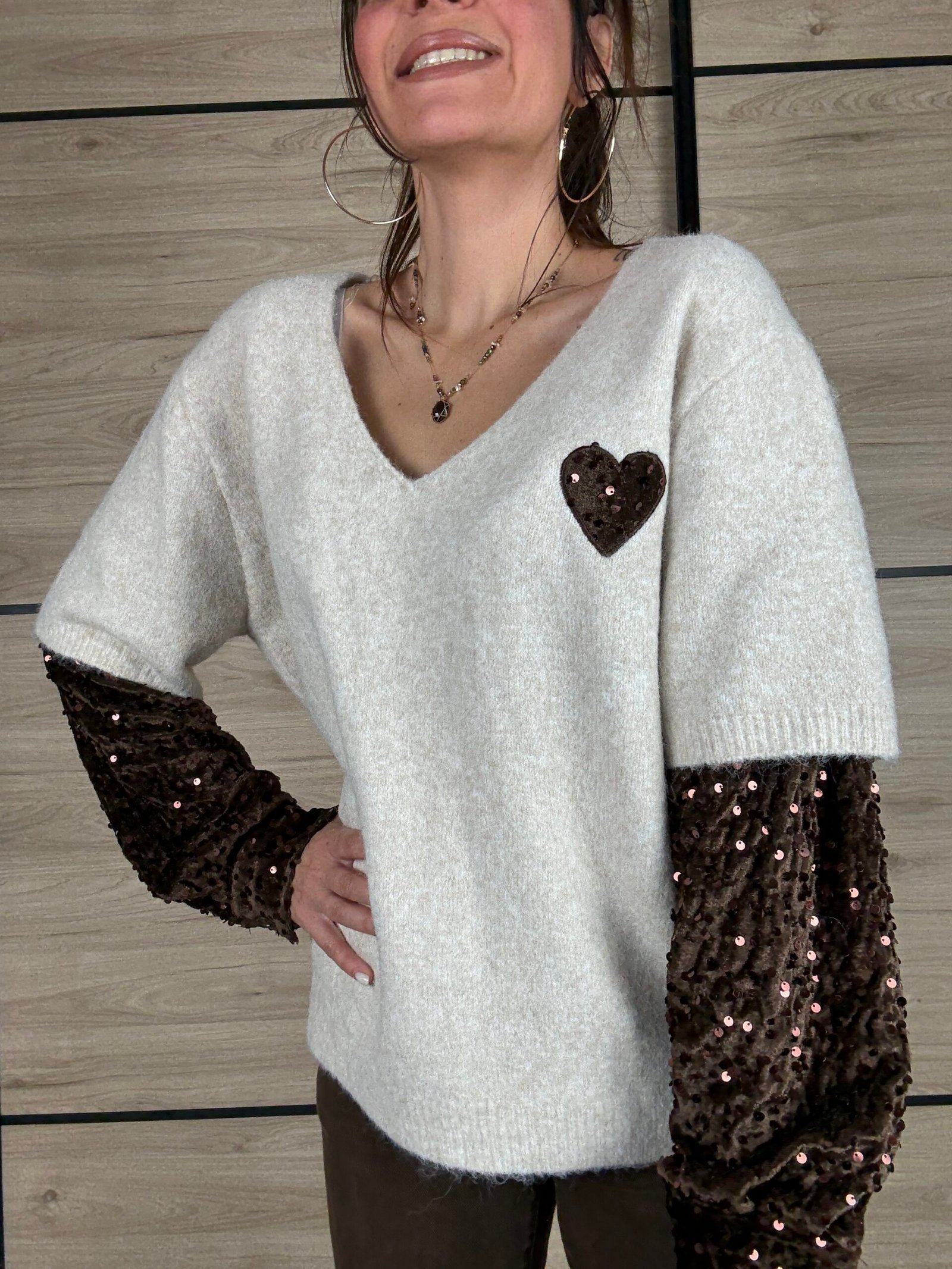 🤎 Le petit cœur en sequins au niveau de la poitrine : le détail craquant