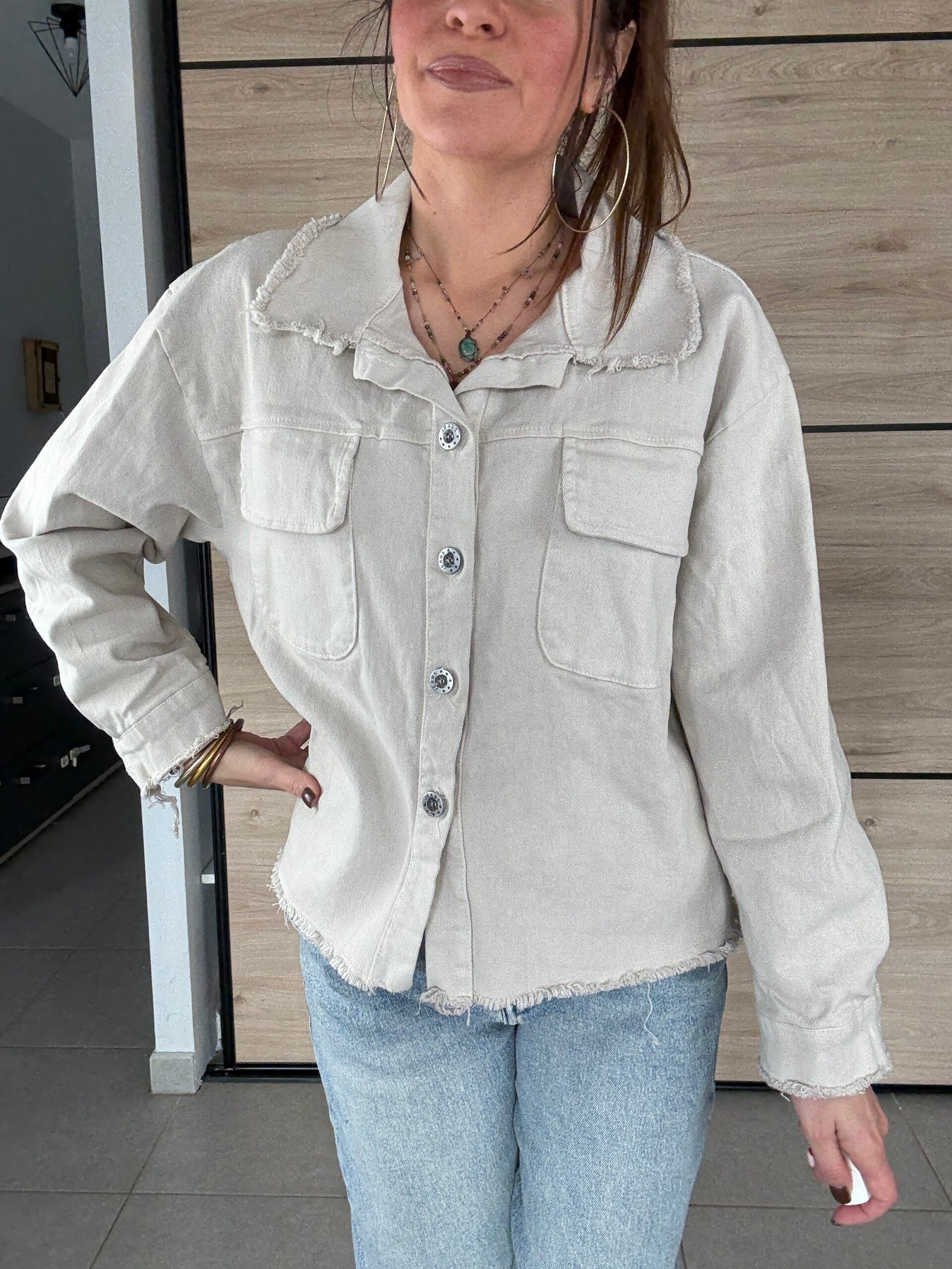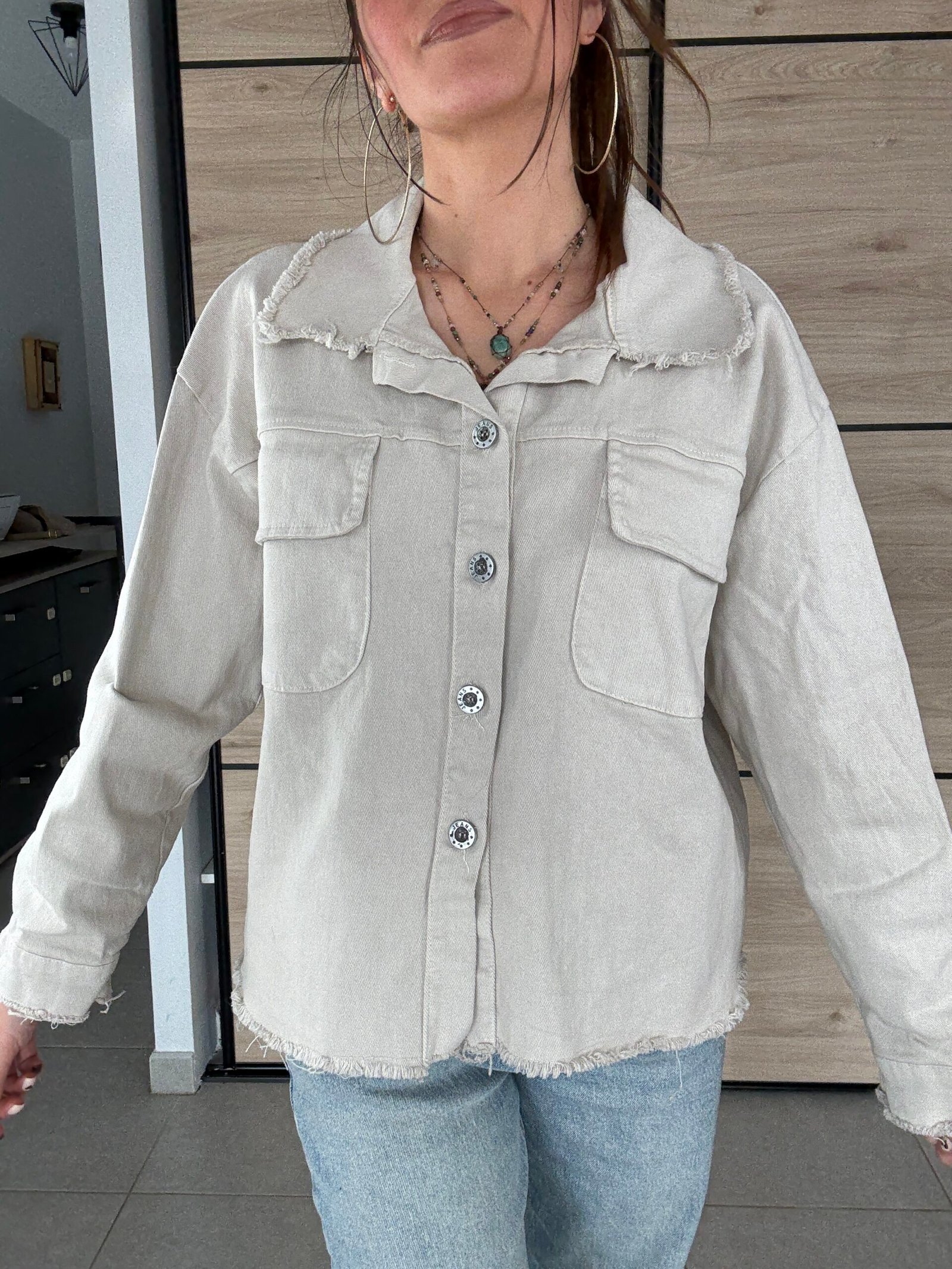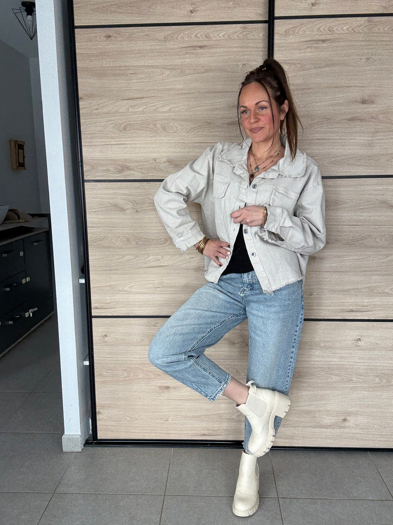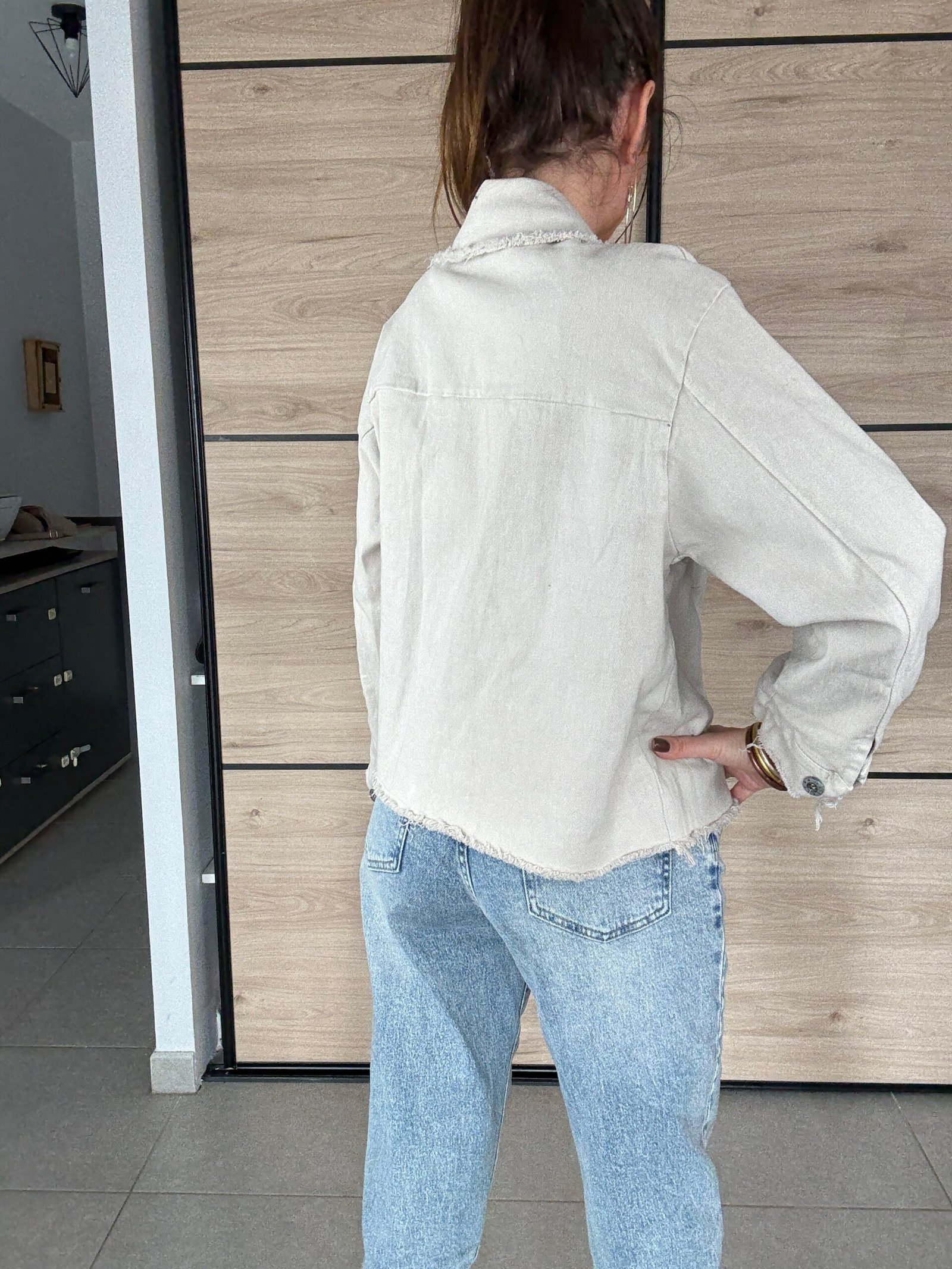 đžCraquez pour cette adorable veste en jean 100 % coton, parfaite pour apporter une touche fraĂźche et stylĂ©e Ă vos looks de mi-saison. Sa teinte beige douce et lumineuse en fait une piĂšce facile Ă associer, tandis que ses finissions lĂ©gĂšrement effilochĂ©es aux extrĂ©mitĂ©s lui donnent un charme dĂ©contractĂ© et ultra tendance.